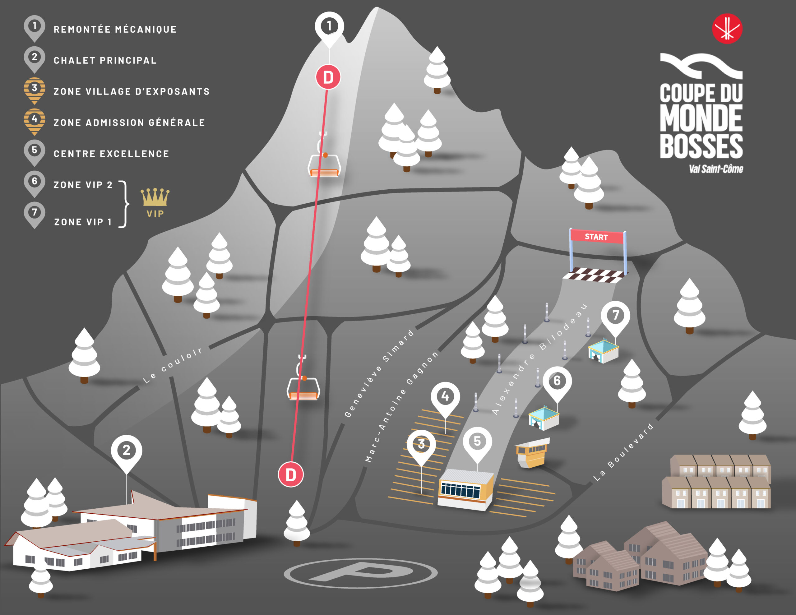 Profitez d’une ambiance électrisante, d’une vue directe sur les descentes, des animations sur place et du village des exposants — tout ça au cœur de l’action.